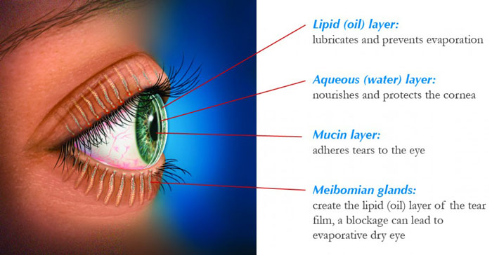 Your tears- which lubricate your eyes and keep them comfortable-evaporate too quickly. An insufficient oil layer can cause your tears to evaporate 4-16 times faster.